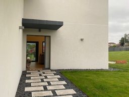 Esta es una vivienda unifamiliar de obra nueva que cuenta con zona de noche distribuida en tres dormitorios uno de ellos principal con vestidor y baño, baño común. La zona de día destinada a cocina y salón comedor cuenta con grandes ventanales que dan salida a porche cubierto, se proyecta un baño en esta zona para posibles visitas sin tener que acceder a la denominada "zona de noche", todo ello ubicado en planta baja de unos 167 m2 construidos.